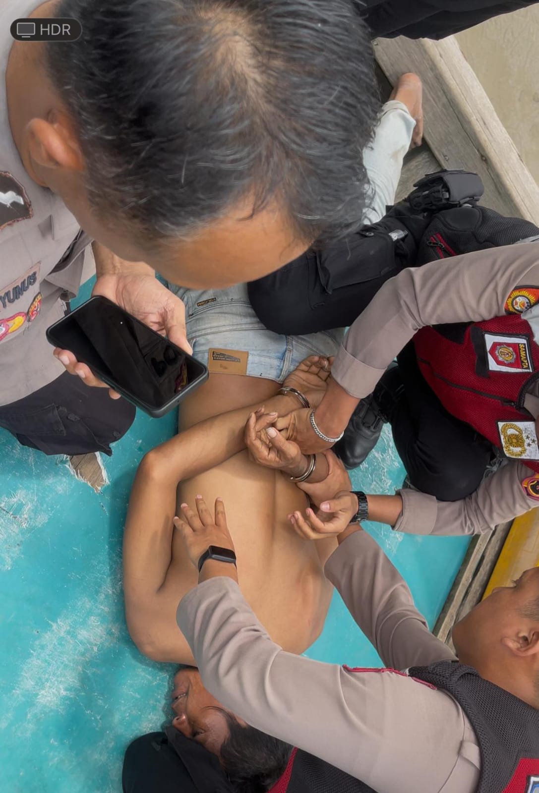 Sesampainya di lokasi, tim mendapatkan informasi dari warga bahwa pelaku melarikan diri ke arah laut Parit 3 dan bersembunyi di sebuah kapal troll mini. Tak ingin kecolongan, petugas melakukan pengintaian selama kurang lebih 30 menit hingga akhirnya pelaku keluar dari tempat persembunyiannya dan langsung diamankan tanpa perlawanan.