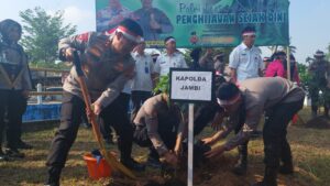 JAMBI, denyutjambi.com – Ketua DPRD Provinsi Jambi, Edi Purwanto melakukan penanaman bibit pohon di Danau Sipin, Kota Jambi, Rabu (23/8/23). Kegiatan ini dilakukan bersama dengan Polda Jambi dalam gerakan Polri lestarikan negeri penghijauan sejak dini yang serentak dilakukan di seluruh Indonesia.