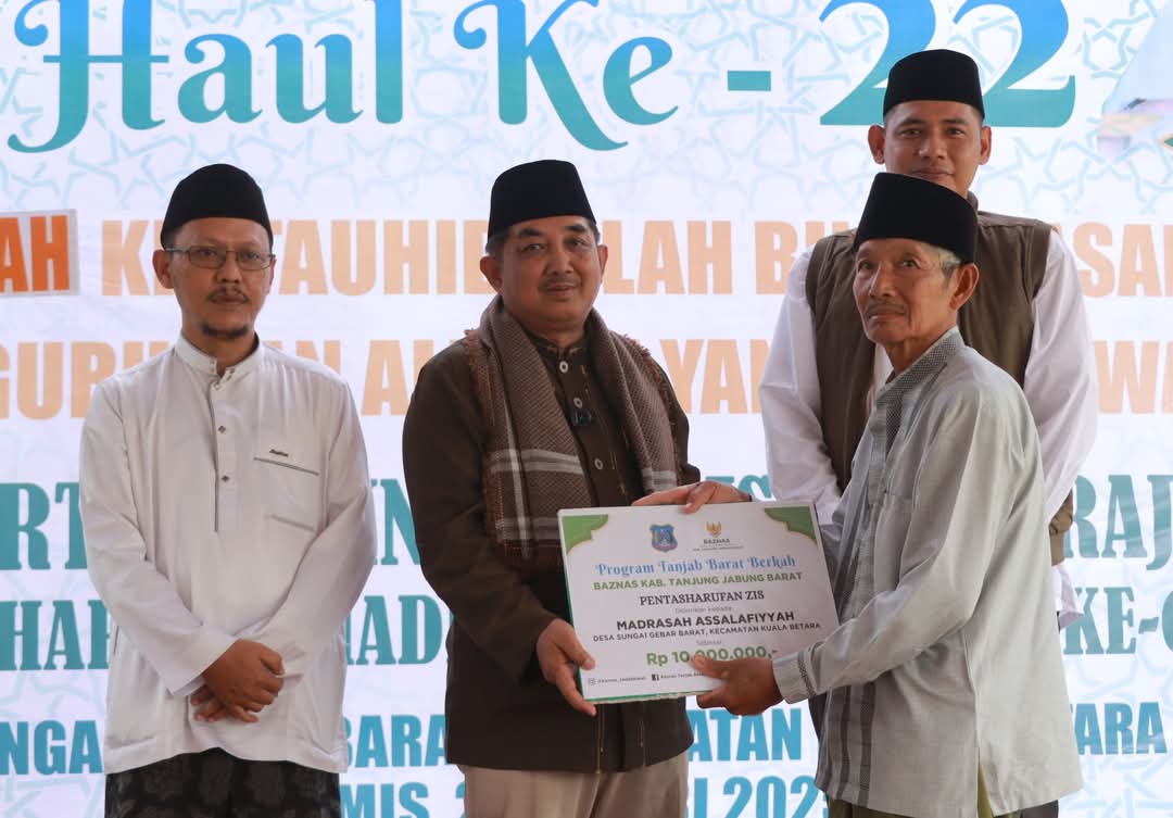 Acara ini turut dihadiri oleh Camat Kuala Betara, Kepala Desa se-Kecamatan Kuala Betara, tokoh agama, tokoh masyarakat, serta masyarakat setempat. Dalam kesempatan tersebut, Bupati juga menyerahkan sejumlah bantuan dari Baznas Tanjab Barat, termasuk Rp10 juta untuk Madrasah Assalafiyyah, Rp3 juta untuk UMKM Pangkas Rambut, Rp2 juta untuk UMKM Emping, serta bantuan untuk takmir masjid dan guru madrasah.