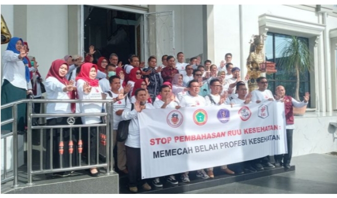 Sementara itu, Ketua Ikatan Dokter Indonesia (IDI) wilayah Jambi, Ir. R. Deden Sucahyana mengatakan bahwa kedatangan mereka hari ini adalah untuk menyampaikan aspirasi penolakan RUU Ombibuslaw Kesehatan.