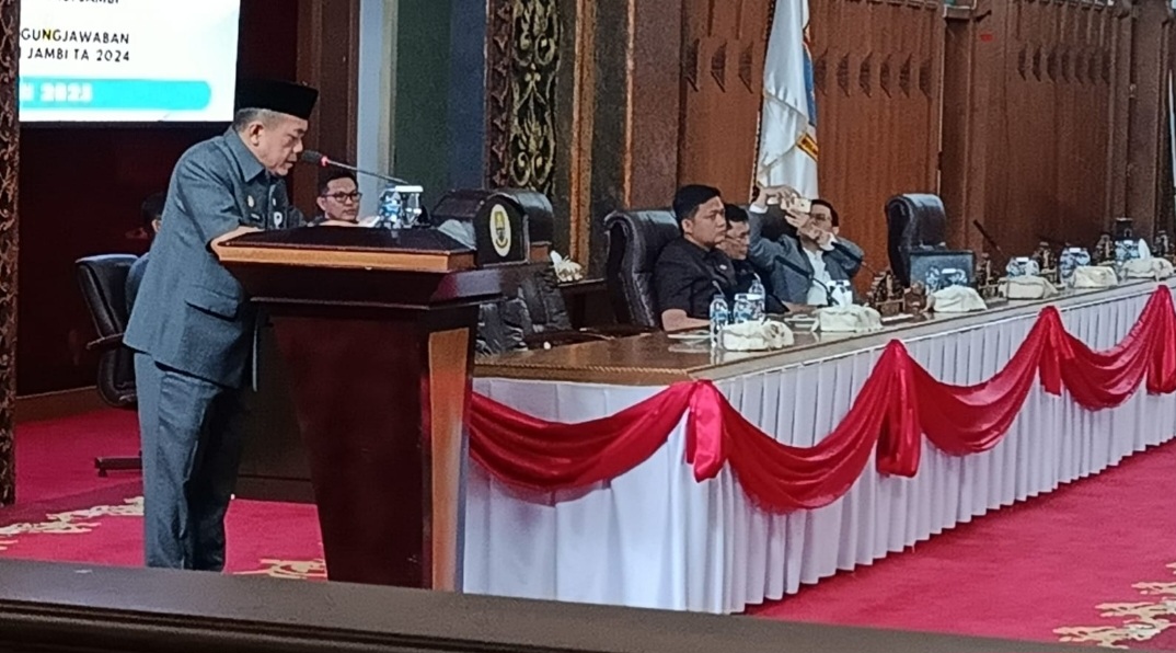 Denyutjambi.com, JAMBI – Gubernur Jambi Dr. H. Al Haris, S.Sos., MH menyampaikan Tanggapan Pemerintah terhadap Pemandangan Umum Fraksi-fraksi tentang Ranperda Pertanggungjawaban Pelaksanaan APBD Provinsi Jambi TA. 2024, bertempat di Gedung Paripurna DPRD Provinsi Jambi, Selasa (29/07/2025).