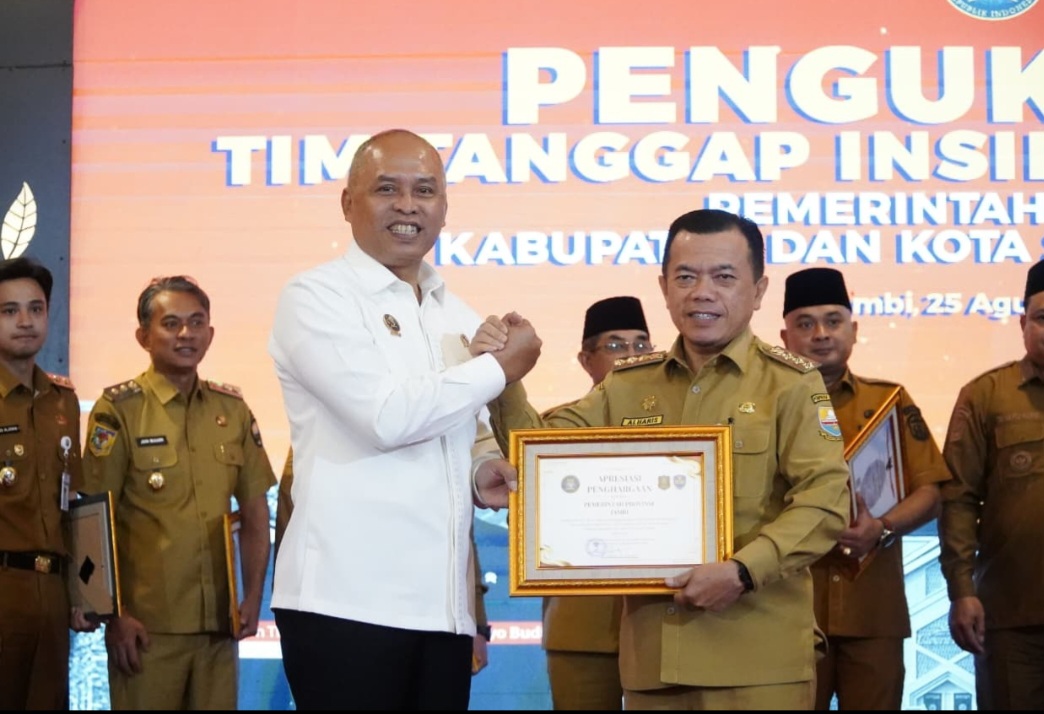 Selain itu, Kepala BSSN juga menyerahkan Piagam Penghargaan kepada Gubernur Jambi Dr. H. Al Haris, S.Sos, MH sebagai provinsi ke-6 yang telah melaksanakan pembentukan dan registrasi TTIS di seluruh kabupaten/kota secara lengkap.(****/dj/rf)