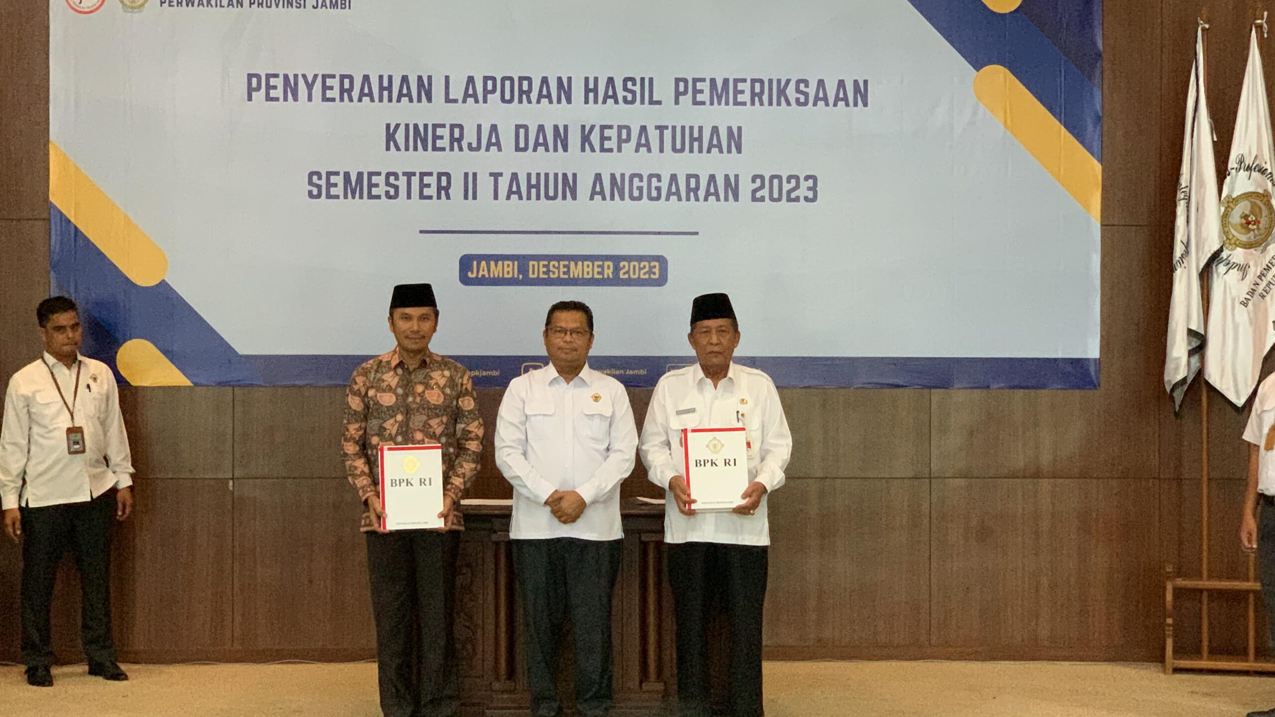 JAMBI, denyutjambi.com – Ketua DPRD Provinsi Jambi, Edi Purwanto menghadiri penyerahan laporan hasil pemeriksaan kinerja dan kepatuhan semester II Tahun Anggaran 2023, di Auditorium BPK Perwakilan Provinsi Jambi, Rabu (20/12/2023). Acara tersebut dihadiri oleh Wakil Gubernur Jambi, Abdullah Sani, Kepala BPK Perwakilan Provinsi Jambi, Paula Henry Simatupang.