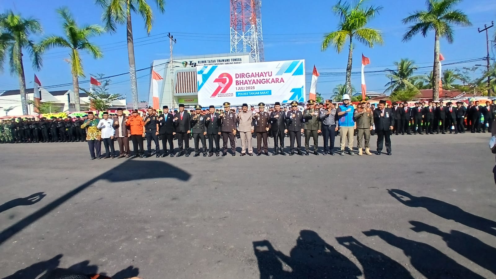 Upacara berlangsung khidmat dipimpin langsung oleh Kapolres Tanjab Barat AKBP Agung Basuki, SIK, MM bersama segenap Pejabat Utama (PJU) Polres Tanjab Barat. Dalam upacara tersebut, Kapolres membacakan amanat Kapolda Jambi yang menekankan pentingnya menjaga semangat pengabdian di usia Polri yang ke-79 tahun ini.