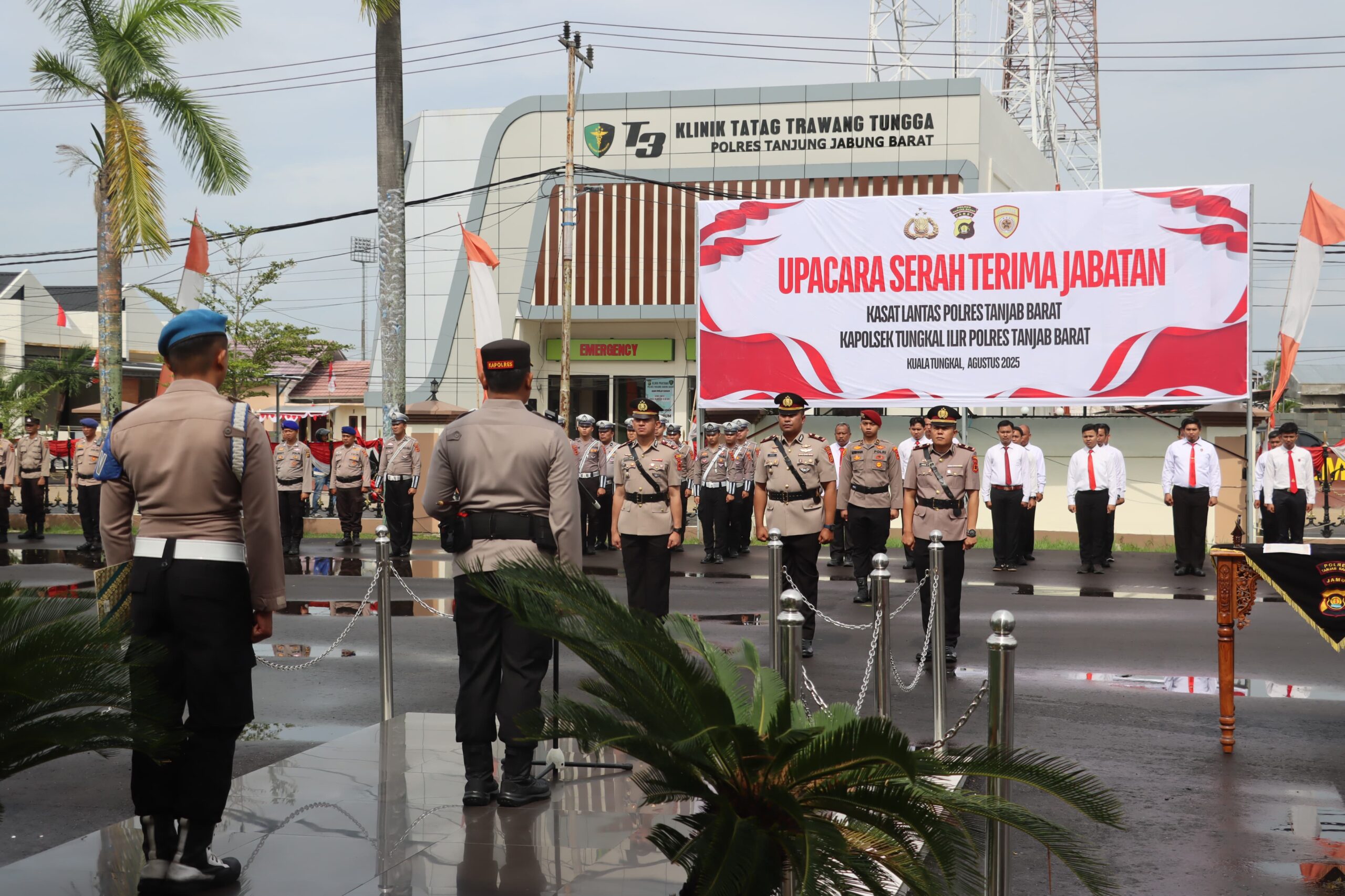 Dalam sertijab ini, AKP Steffan Thomas Lumowa, S.Tr.K., S.I.K., resmi menyerahkan jabatan Kasat Lantas kepada AKP Vhycky Mhoeviandry Tanjung, S.H., yang sebelumnya menjabat sebagai Kapolsek Tungkal Ilir. Sementara itu, posisi Kapolsek Tungkal Ilir kini diemban oleh Iptu Yokki Farsito, S.H.