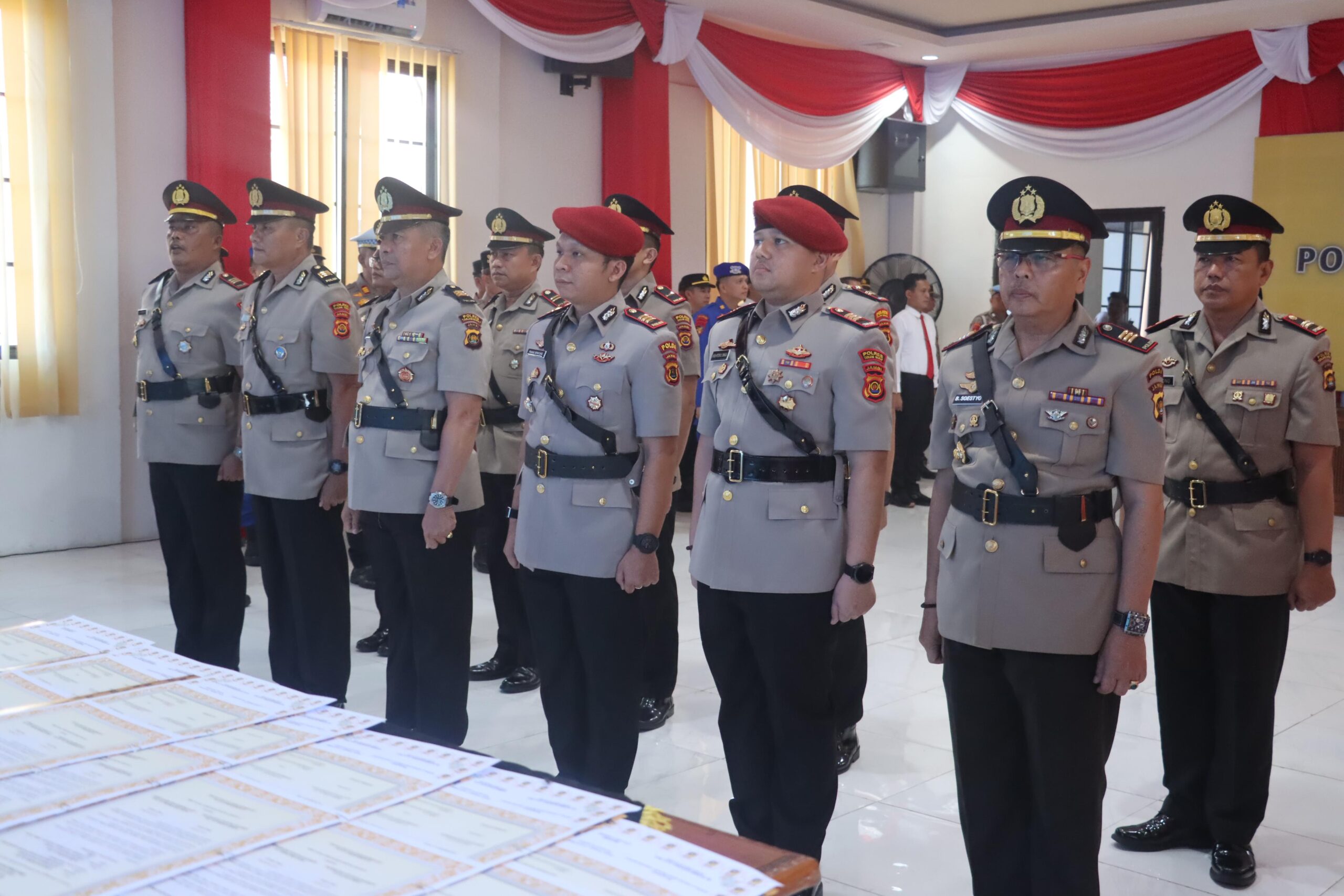 Upacara yang berlangsung khidmat di Ruang Rekonfu Mapolres tersebut dipimpin langsung oleh Kapolres Tanjab Barat, AKBP M. Kuswicaksono, S.I.K., M.H., serta dihadiri Ketua Bhayangkari Cabang Tanjab Barat Ny. Rika Wicak beserta pengurus, para pejabat utama, dan personel gabungan Polres serta Polsek jajaran.
