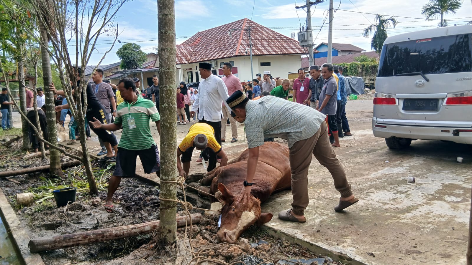 Kuala Tungkal, Denyutjambi.com — Suasana penuh kekhidmatan dan semangat kebersamaan mewarnai pelaksanaan penyembelihan hewan kurban di Mapolres Tanjung Jabung Barat (Tanjab Barat), Sabtu (7/6). Kegiatan ini dipimpin langsung oleh Kapolres Tanjab Barat, AKBP AgungBasuki, SIK, MM, dalam rangka memperingati Hari Raya Idul Adha 1446 H.