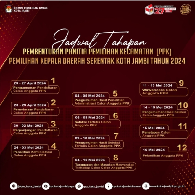 Tuti menambahkan, KPU Kota Jambi tetap membuka kesempatan petugas adhoc Pilpres 2024 untuk mendaftar kembali sebagai badan adhoc Pilkada 2024.