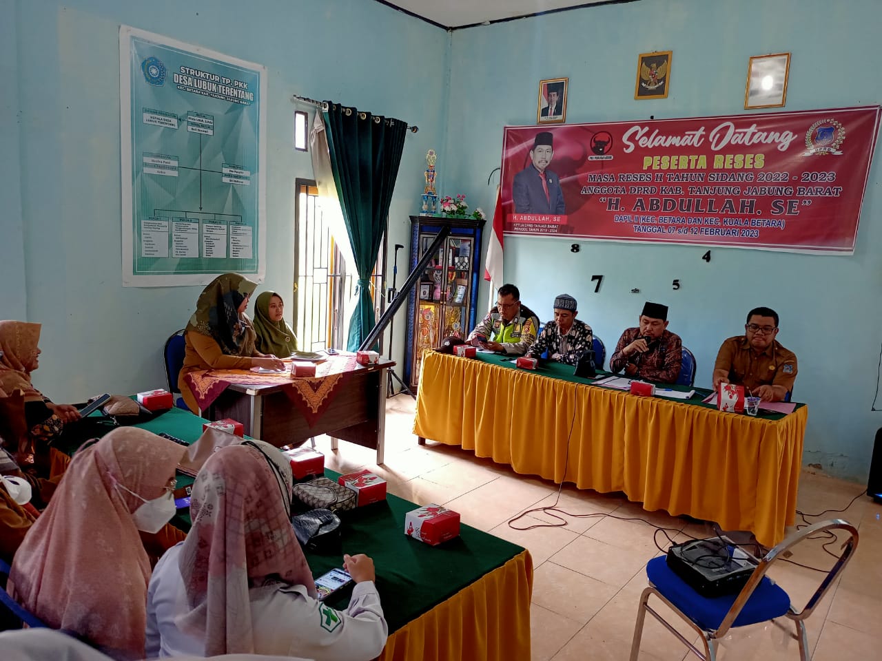 Kualatungkal, Denyutjambi.com – Ketua Dewan Perwakilan Rakyat Daerah (DPRD) Kabupaten Tanjung Jabung Barat (Tanjabbar), H. Abdullah, SE kunjungi Desa Lubuk Terentang dalam rangka Masa Reses II, Tahun Sidang 2022-2023 disambut hangat warga.