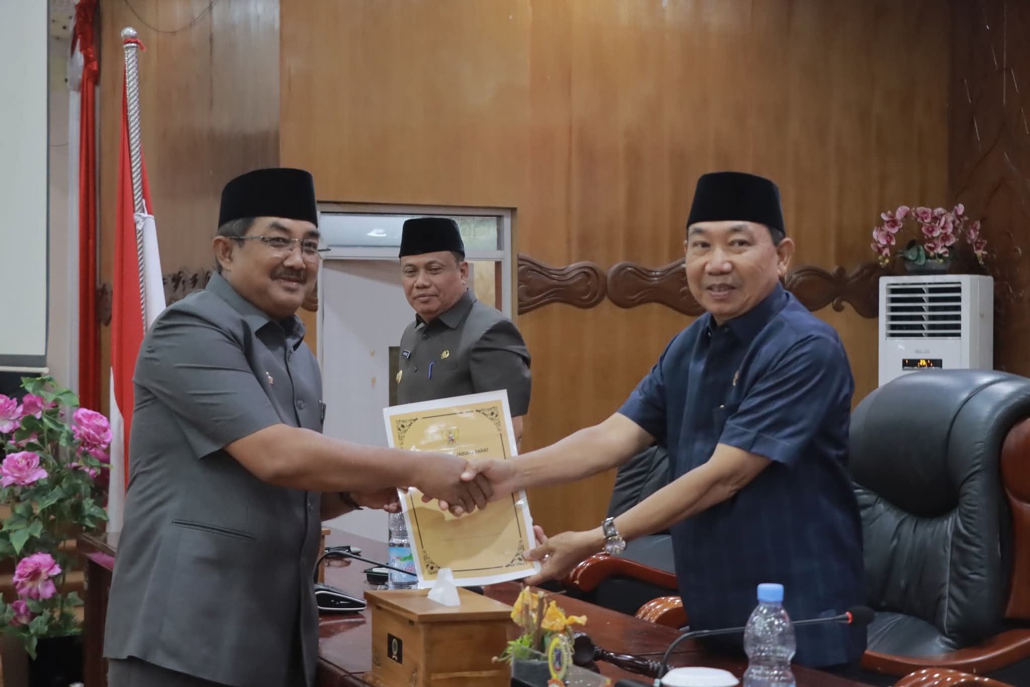 Rapat yang digelar di Ruang Sidang Utama DPRD itu dipimpin oleh Ketua DPRD Hamdani, S.E., didampingi Wakil Ketua I H. Muh. Syafril Simamora, S.H., dan Wakil Ketua II Hasan Basri Harahap. Turut hadir Forkopimda, Wakil Bupati Tanjab Barat Dr. H. Katamso, S.A., S.E., M.E., Sekretaris Daerah, 26 anggota DPRD, para kepala OPD, instansi vertikal, perwakilan BUMD, perbankan, serta tamu undangan lainnya.