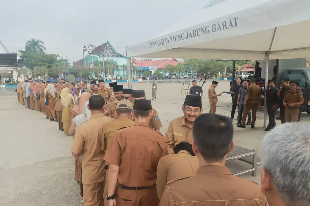 KUALATUNGKAL, Hajarnews.com – Bupati Tanjung Jabung Barat (Tanjabbar), Drs. H. Anwar Sadat, M. Ag memimpin Apel Gabungan dan Silaturahmi ASN dan Non ASN pasca cuti lebaran Idul Fitri 1445 H/2024 M di Alun-Alun Kualatungkal, Selasa (16/04/24).