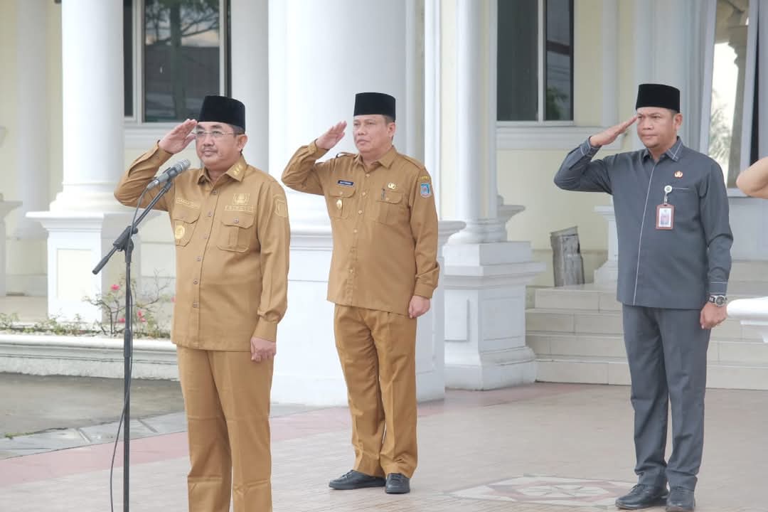Apel gabungan ini dihadiri langsung oleh Bupati Tanjab Barat, Drs. H. Anwar Sadat, M.Ag., didampingi Wakil Bupati Dr. H. Katamso, SA, SE, ME. Turut hadir pula Sekretaris Daerah, Staf Ahli Bupati, para Asisten Setda, Kepala OPD beserta jajaran, para Kabag, Direktur Rumah Sakit, dan Camat Tungkal Ilir.