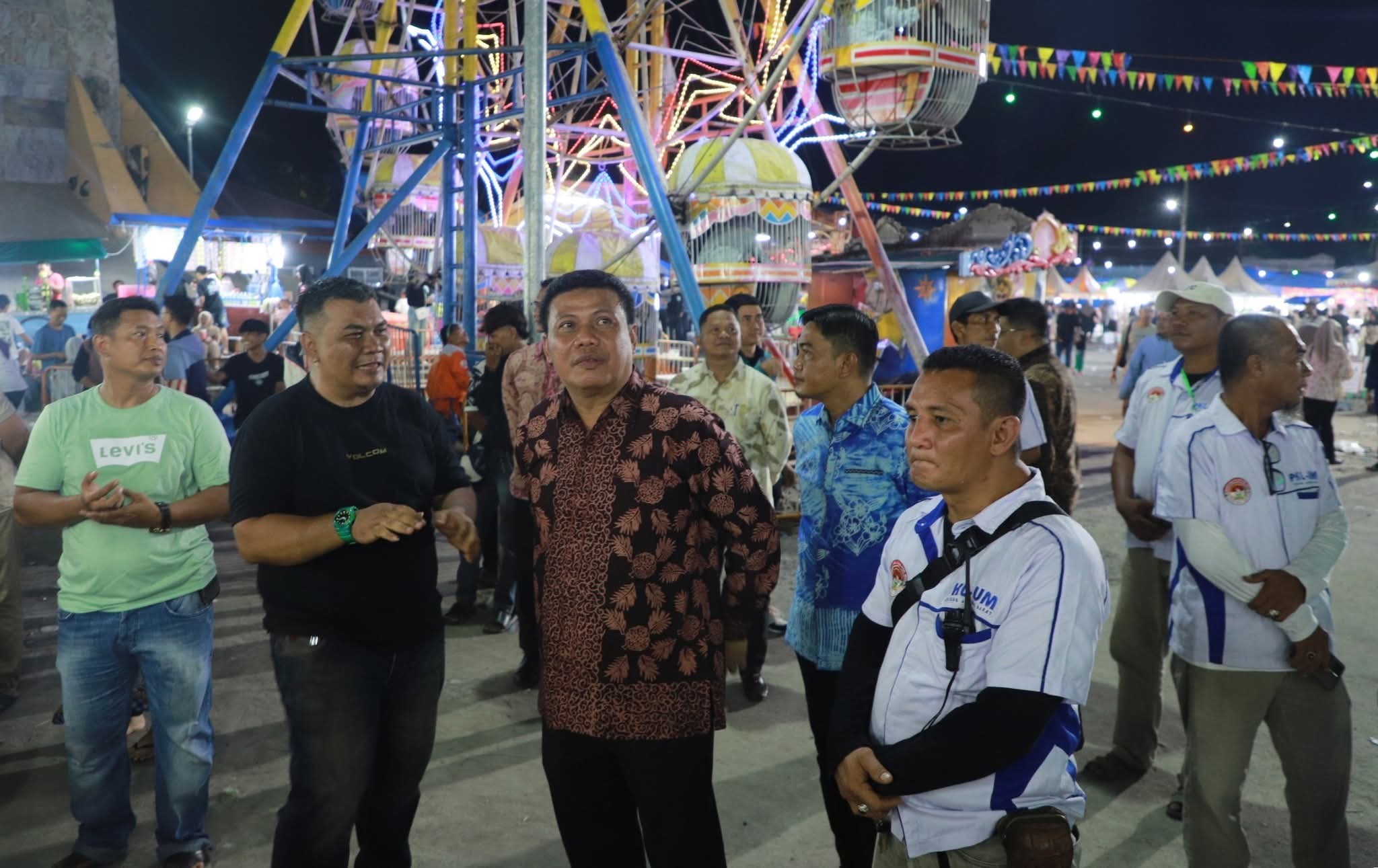 Sebagai penutup kegiatan, Wakil Bupati Katamso bersama rombongan meninjau pasar malam yang digelar di area Alun-Alun Kuala Tungkal. Kegiatan tersebut merupakan rangkaian kemeriahan HUT ke-80 Tentara Nasional Indonesia (TNI) yang diselenggarakan oleh Kodim 0419/Tanjab bekerja sama dengan Organisasi PKL-UM Kabupaten Tanjung Jabung Barat.