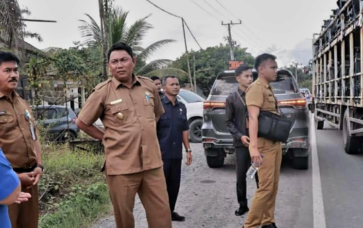 Kualatungkal, Denyutjambi.co – Usai meninjau kebakaran, Wabup Tanjung Jabung Barat (Tanjabbar) H. Hairan, SH memberikan sosialiasi kepada truk batubara yang melintas di Jalan Lintas Timur Kecamatan Batang Asam, Senin (04/10/22).