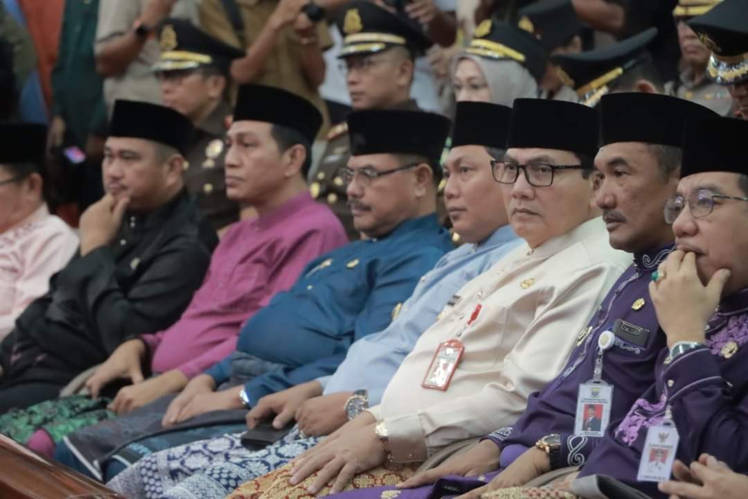 Gubenur Jambi Dr.H.Alharis, S.Sos.,MH, Anggota DPR RI dan DPD dapil Jambi, Forkopimda Provinsi Jambi, Para Kepala Daerah Kabupaten/Kota se-Provinsi Jambi, Ketua DPRD se-Provinsi Jambi dan tamu undangan lainnya.